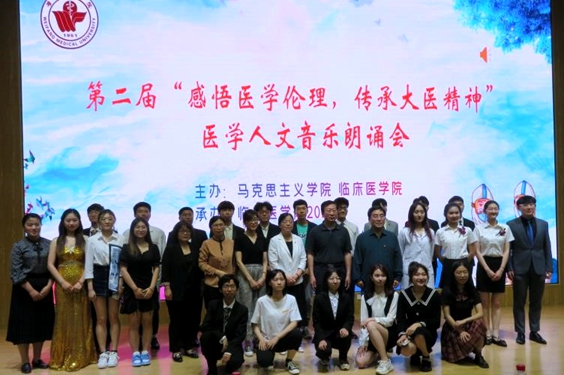 6月4日晚,我校第二届“感悟医学伦理,传承大医精神”医学人文音乐朗诵会在思政课虚拟仿真实践教学中心举行。本次活动由御书屋 、临床医学院主办,临床医学院2019级承办。御书屋 党总支书记程乐森、药学院正处级组织员、伦理学教研室教授王建立、临床医学院党委副书记许婷婷、御书屋 教师参加活动。