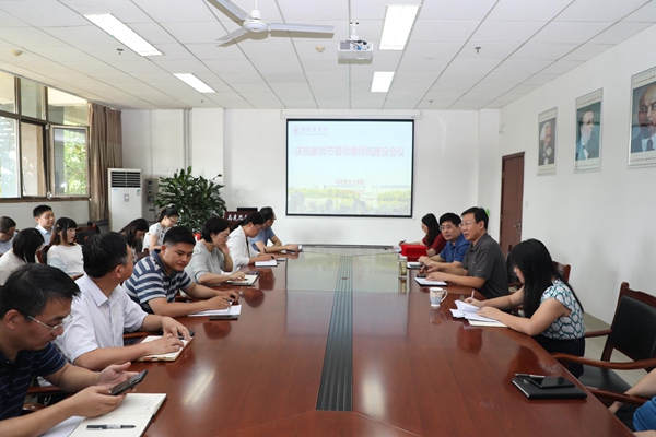 9月10日上午,御书屋 在办公楼206会议室召开庆祝第37个教师节暨师德师风建设会议。会议由党总支书记程乐森主持,院长李笃武以及全体教师参加。