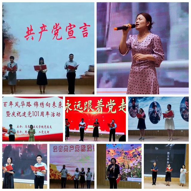 活动在《共产党宣言》诵读中拉开帷幕,《永远跟党走》讲述了人民群众把赤诚之心奉献给党,永远跟党走的坚定信心,为共筑中国梦凝聚的磅礴力量;《可爱的中国》展现了方志敏烈士用生命绝唱描绘出的和平繁华;《囚歌》《把牢底坐穿》是革命烈士用生命践行着为共产主义事业奋斗终身的铮铮誓言;歌曲《如愿》,婉转深情、闻之泪目,祭奠所有为新中国浴血奋战的革命先烈们,这盛世如“你”所愿;《清澈的爱 只为中国》更是体现了新时代戍边男儿,宁洒热血不失寸土的赤胆忠诚,正如《不朽》所朗诵的那样,他们的躯体不朽,已长成漫山的翠竹青松,他们的灵魂不朽,依然在我们的血液里奔流;大合唱《没有共产党就没有新中国》将现场气氛推向了高潮。一切向前走,不忘来时路,全体党员怀着无比激动的心情重温了入党誓词。