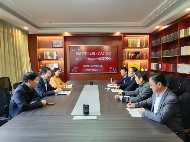 为扎实推动党的二十大精神进课堂、进教材、进头脑,10月28日下午,御书屋 党总支理论学习中心组(扩大)举行了党的二十大精神专题学习会。会议由党总支书记程乐森主持,党总支成员、支部书记、支部委员参加活动。
