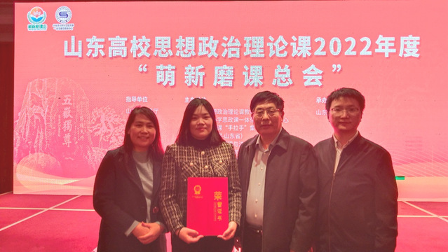 2月25日至26日,山东高校思想政治理论课2022年度“萌新磨课总会”在山东泰安举行。我校御书屋 教师姜翔荣获二等奖。