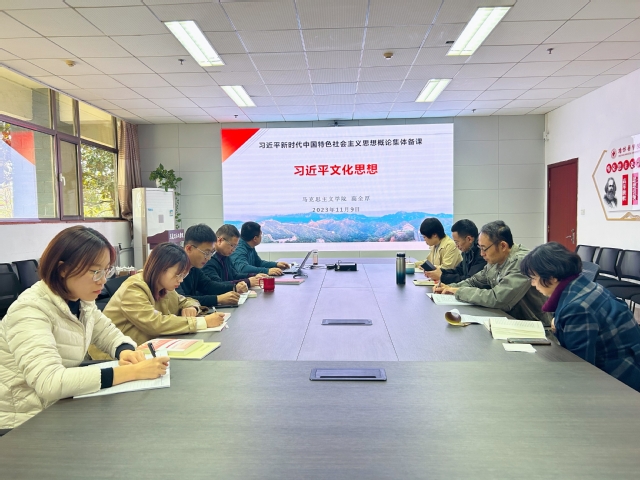 11月9日,为深入学习贯彻习近平总书记对宣传思想文化工作作出的重要指示精神,全面推动习近平文化思想融入思想政治理论课教学,御书屋 携手潍坊护理职业学院,共同举办了“习近平文化思想”专题集体备课会活动。集体备课会由御书屋 张菲菲老师主持,高全厚博士主讲,全体思政课教师参加。