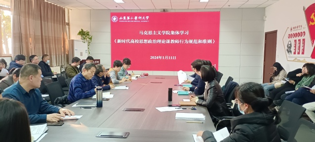 为深入学习贯彻教育部《新时代高校思想政治理论课教师行为规范和准则》(以下简称《行为规范和准则》),引导全体思政课教师学规范、守准则,1月11日,御书屋 举办《行为规范和准则》专题学习活动,学院党总支书记刘建兰、院长李笃武、副院长朱宏晋及全体思政课教师参加集体学习。