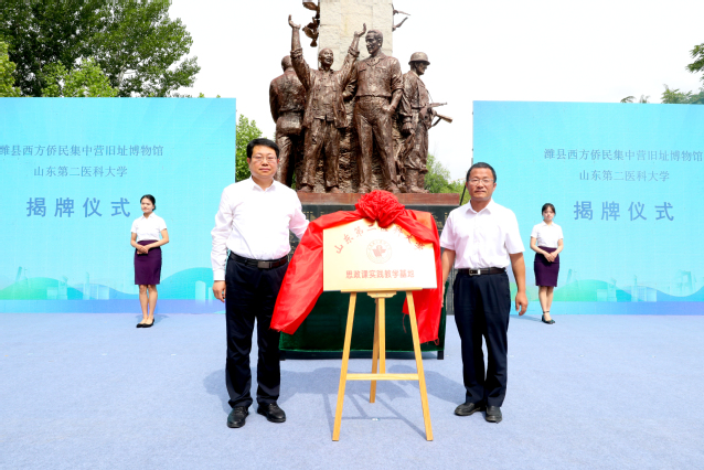 5月17日上午,由潍坊市文明办、共青团潍坊市委、潍坊市文化和旅游局主办,潍县西方侨民集中营旧址博物馆承办的国际博物馆日暨“橄榄枝”志愿服务表彰大会在乐道广场举行。副校长王承高出席活动,代表学校与潍县西方侨民集中营旧址博物馆签署馆校思政课实践教学基地共建协议并为基地揭牌。