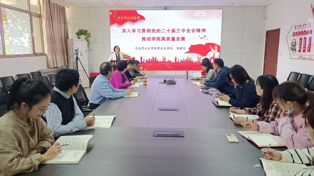 最后,御书屋 党总支书记刘建兰以“深入学习贯彻党的二十届三中全会精神,推动学院高质量发展”为主题,为党员们讲授了一堂生动而深刻的党课,进一步强化了全体党员教师的责任感与使命感。
