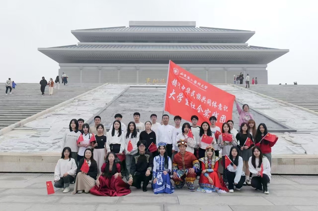 在山东省铸牢中华民族共同体意识教育实践基地——青州博物馆,讲解员引导同学们来到铸牢中华民族共同体意识的学习板块,向同学们介绍了“中华民族一家亲”的文物记载,讲述了青州各民族交往、交流、交融的历史故事,以及各族人民手牵手打造和合共生的美好景象。在铸牢中华民族共同体意识体验基地——青州古城,同学们参观学习了民族团结进步宣传长廊,了解新时代党的民族政策,少数民族同学分享了对民族文化和中华文化的了解和情感。在非遗项目体验现场,同学们观看非遗项目表演,聆听表演人介绍非遗文化,参与非遗项目体验,领略非物质文化遗产的独特魅力,体悟中华文化的博大精深。