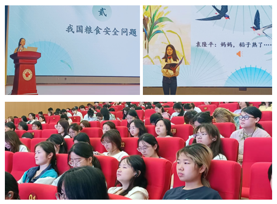 课堂上,郎宁从我国粮食安全现状、面临的问题及应对策略三个维度展开讲解,阐释“民为国基,谷为民命”,将袁隆平院士的禾下乘凉梦与青年责任紧密相连,引导同学们要以“珍视每一粒粮食”的行动继承袁隆平院士的遗志,以“做一粒好种子”的信念在时代沃土中扎根生长。李赞美同学声情并茂地诵读了袁隆平写给妈妈的信——《妈妈,稻子熟了》,感人至深,引发情感共鸣。同学们纷纷表示,此次课程让大家懂得了每一粒粮食背后是千万农民的汗水与科技工作者的智慧结晶,懂得了节约粮食的重要性,并决心要从现在做起,实行“光盘行动”,守护好国家的粮仓。