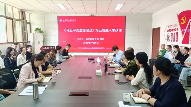 9月30日上午,御书屋 邀请青岛科技大学御书屋 院长曹胜教授来校交流,并作题为“《习近平谈治国理政》第五卷融入思政课教学”的专题辅导报告。御书屋 院长李笃武主持讲座,御书屋 、外国语学院教师及学校新进辅导员到场聆听。