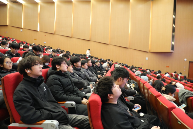 实地研学结束后,学院组织学生在学校文体活动中心报告厅开展数字展馆主题活动。此次活动由学校大学生“理响”宣讲团担任主讲,宣讲团成员以“红色精神・薪火相传”为主题,紧密结合潍坊本地党史资源,通过生动的革命故事讲述、典型党史案例解读、红色精神内涵阐释等形式,系统梳理了潍坊地区党组织带领群众奋斗的光辉历程,清晰阐释了红色精神在不同历史时期的时代价值。